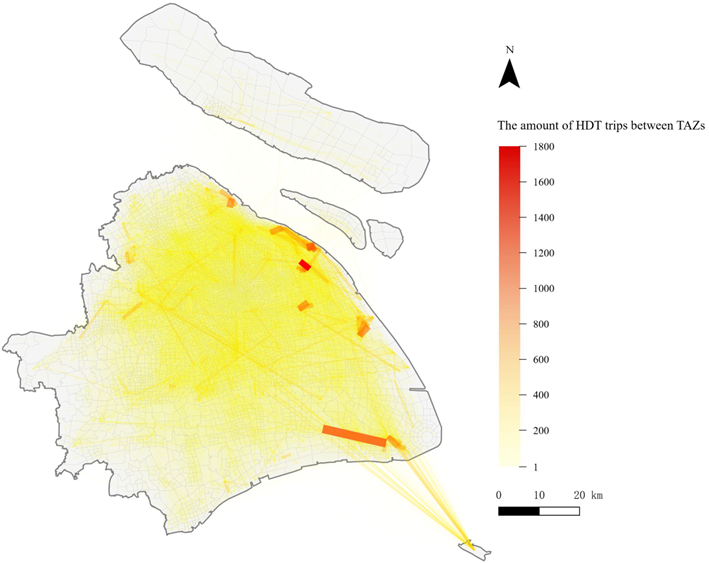 本文在交通小区层面,对货运活动热点区域(图2)和OD分布(图3)开展分析,并利用复杂网络社区发现算法,识别上海市交通小区间的货运组团联系(图4),主要揭示了上海市重型货车的空间活动规律与区域间货运联系特征:货运活动呈现显著的外围集聚特征;服务港口集疏运和产业供应链的特征明显;货运社区通常以港口、货运火车站、物流园区及制造业基地为中心等。